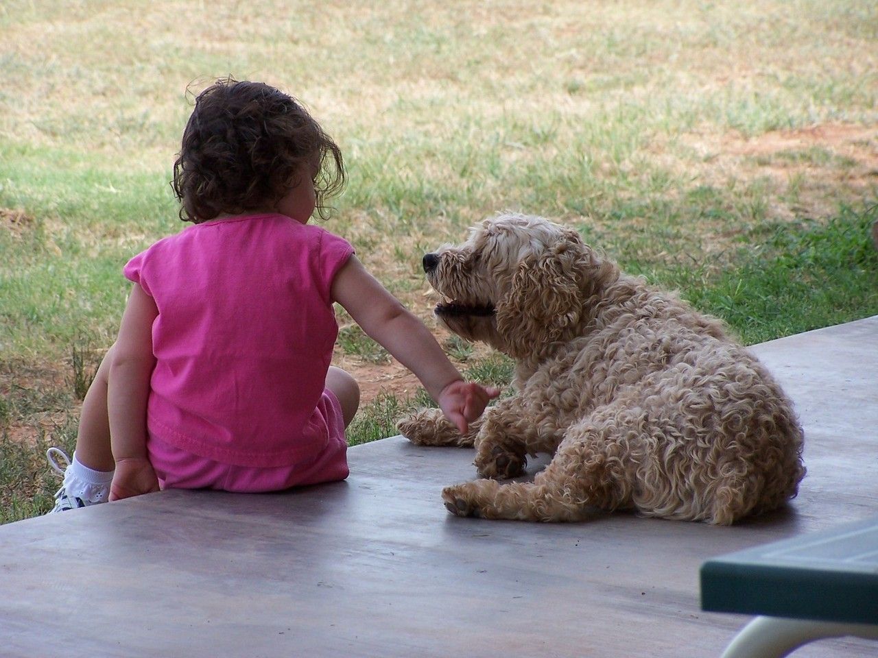 Større børn kan i høj grad deltage i pasning af familiens hund, idet de f.eks. kan lufte hunden, passe dens pels, fodre den, lave træningsøvelser med den og i det hele taget lege og omgås hunden med en masse fornøjelse for såvel hunden som dem selv.