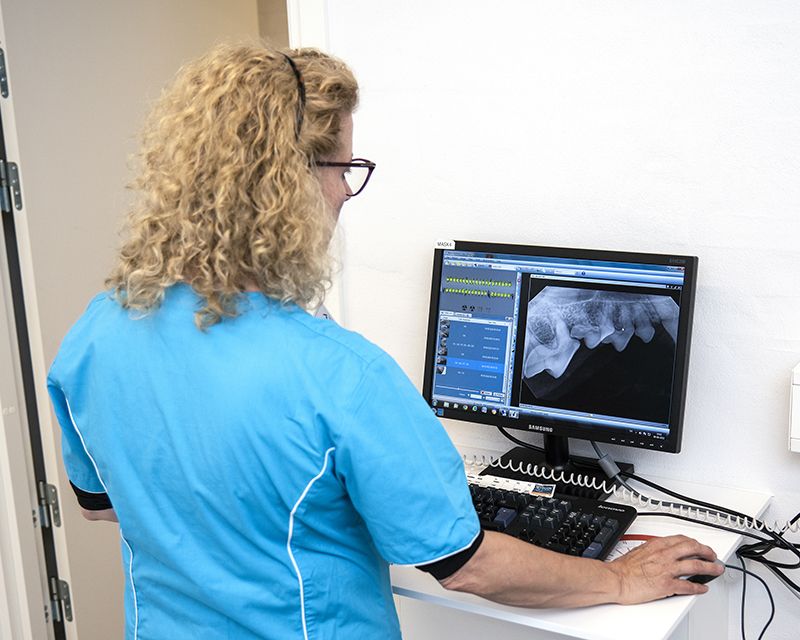 Også hos disse dyr kræver tandbehandlingen en bedøvelse. Bedøvelsen foregår lige som hos hunde og katte altid under konstant overvågning af en veterinærsygeplejerske, der hjælper dyrlægen under hele forløbet.